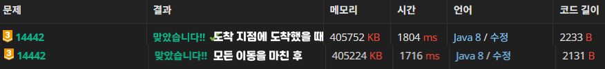 - 모든 이동을 마친 후, 최소 경로를 갱신하는 것이 더 빨랐다!