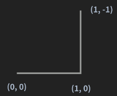 1세대 드래곤 커브는 0세대 드래곤 커브를 끝 점을 기준으로 시계 방향으로 90도 회전시킨 다음 0세대 드래곤 커브의 끝 점에 붙인 것이다. 끝 점이란 시작 점에서 선분을 타고 이동했을 때, 가장 먼 거리에 있는 점을 의미한다.