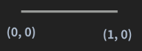 0세대 드래곤 커브는 아래 그림과 같은 길이가 1인 선분이다. 아래 그림은 (0, 0)에서 시작하고, 시작 방향은 오른쪽인 0세대 드래곤 커브이다.