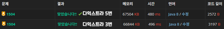 다익스트라 함수를 적게 실행하는 것이 더 실행시간이 빠를 것 같았는데, 그 반대였다.